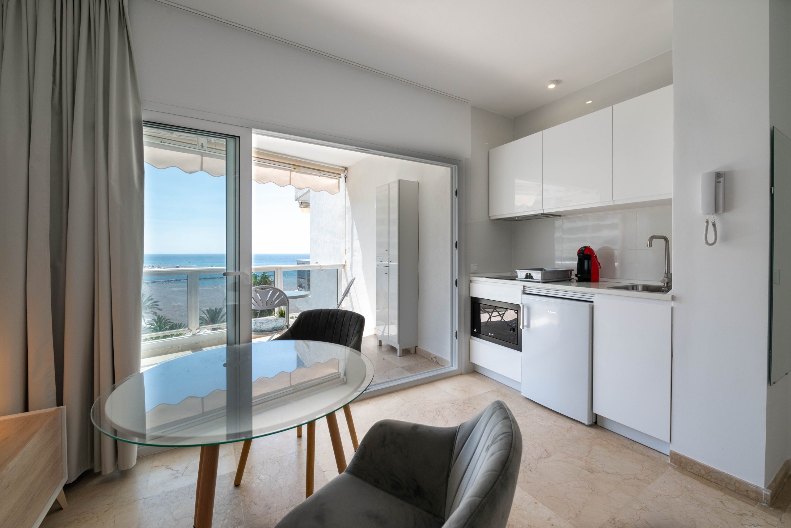 Recién reformado, estudio en pleno paseo marítimo de Marbella. Playa a 1 minuto, vistas al puerto deportivo. Ideal para visitar Marbella. Con piscina y acceso directo a la playa. Totalmente equipado