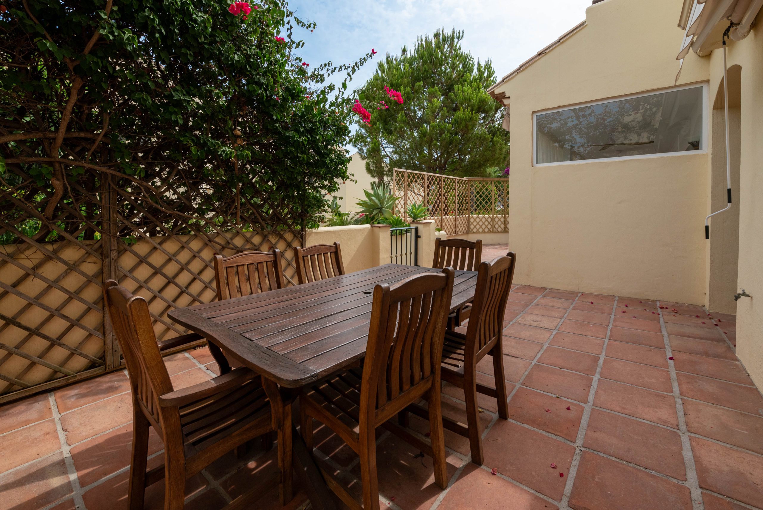 Casa adosada en unas de las urbanizaciones más prestigiosas de Marbella. Rodeada de campos de golf (club de golf Aloha, las brisas, los naranjos). Ideal para familias o grupos tranquilos que quieran conocer la autentica Marbella. 300 días de sol para jugar al golf y disfrutar de esta ciudad. Urbanización muy estricta para las personas que quieran descansar. Pinos de Aloha es una urbanización de las más prestigiosas de Nueva Andalucía, a 5 minutos de puerto Banús, 15 de Marbella y 45 aeropuerto